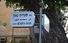 A street sign at the intersection of Se’adya Ga’on and HaHashmona’im streets in Tel Aviv.