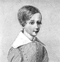 Sabine Baring-Gould was born in the parish of St Sidwell, Exeter, on 28 January 1834.[3] He was the eldest son and heir of Edward Baring-Gould (1804–1872), lord of the manor of Lew Trenchard, a Justice of the Peace and Deputy Lieutenant of Devon, formerly a lieutenant in the Madras Light Cavalry (resigned 1830), by his first wife, Sophia Charlotte Bond, daughter of Admiral Francis Godolphin Bond, Royal Navy.[4]