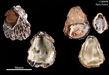 | Shell of Saccostrea cuccullata (specimen at MNHN, Paris) | |