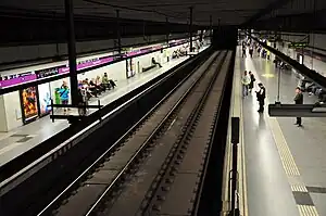 Sagrada Família is a metro station in Barcelona Metro network. It is named after the famous, and adjacent, Basílica i Temple Expiatori de la Sagrada Família, a church first designed by architect Antoni Gaudí and still under construction. It is served by TMB-operated Barcelona Metro lines L2 and L5.