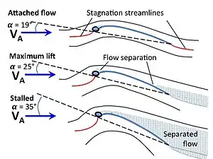 A sail provides propulsive force via a combination of lift and drag, depending on its angle of attack, its angle with respect to the apparent wind. Apparent wind is the air velocity experienced on the moving craft and is the combined effect of the true wind velocity with the velocity of the sailing craft. Angle of attack is often constrained by the sailing craft's orientation to the wind or point of sail. On points of sail where it is possible to align the leading edge of the sail with the apparent wind, the sail may act as an airfoil, generating propulsive force as air passes along its surface, just as an airplane wing generates lift, which predominates over aerodynamic drag retarding forward motion. The more that the angle of attack diverges from the apparent wind as a sailing craft turns downwind, the more drag increases and lift decreases as propulsive forces, until a sail going downwind is predominated by drag forces. Sails are unable to generate propulsive force if they are aligned too closely to the wind.