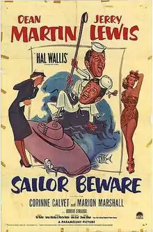 Sailor Beware is a 1952 American comedy film directed by Hal Walker and starring the comedy team of Martin and Lewis. It is an adaption of a 1933 Kenyon Nicholson and Charles Robinson play of the same name. It was released on February 9, 1952 by Paramount Pictures. The working title was At Sea with the Navy.[3]