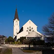 From the 2000 census, 1,688 or 90.2% were Roman Catholic, while 46 or 2.5% belonged to the Swiss Reformed Church. Of the rest of the population, there were 11 individuals (or about 0.59% of the population) who belonged to the Christian Catholic Church, and there were 20 individuals (or about 1.07% of the population) who belonged to another Christian church. There was 1 individual who was Jewish, and 18 (or about 0.96% of the population) who were Islamic. There were 2 individuals who were Buddhist. 31 (or about 1.66% of the population) belonged to no church, are agnostic or atheist, and 64 individuals (or about 3.42% of the population) did not answer the question.[9]