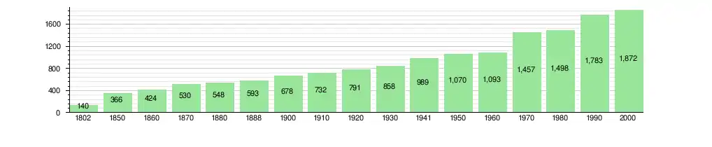 Saint-Léonard has a population (as of December 2020) of 2,460.[6] As of 2008, 13.6% of the population are resident foreign nationals.[7] Over the last 10 years (2000–2010 ) the population has changed at a rate of 10.7%. It has changed at a rate of 8% due to migration and at a rate of 2.7% due to births and deaths.[8]