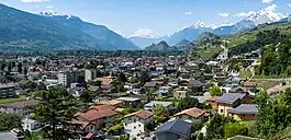 The municipality is located in the Sierre district. The original haufendorf village (an irregular, unplanned and quite closely packed village, built around a central square) was located on the left side of the Lienne and along the right side of the Rhone valley. By the middle of the 20th Century, it had spread out into the valley floor.