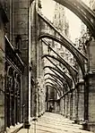 Saint-Ouen Abbey, (French: Abbaye Saint-Ouen de Rouen) is a large Gothic Catholic church and former Benedictine monastic church in Rouen. It is named for Audoin (French: Ouen, English: Owen), 7th-century bishop of Rouen in modern Normandy, France.[9] The church's name is sometimes anglicized as St Owen's.[10][11] Built on a similar scale to nearby Rouen Cathedral, the abbey is famous for both its architecture and its large, unaltered Cavaillé-Coll organ, which was described by Charles-Marie Widor as "a Michelangelo of an organ". With the cathedral and the Church of Saint-Maclou, Saint-Ouen is one of the principal French Gothic monuments of the city.