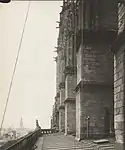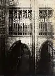 The west façade was never completed during the Middle Ages. The present structure was constructed between 1846 and 1851 in a Neo-Gothic style that bears little resemblance to the original Late Gothic designs.