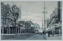By 1850, horse-drawn streetcars habitually lined the street. Later in 1864, the first electric-powered tramway—provided by the Montreal City Passenger Railway—was introduced .[2] This allowed workers to get to and from their jobs in other parts of the city, as well as retail workers to the many department stores that had started up on Sainte-Catherine following World War I. This included stores like Scoggie's, Goodwin's, Morgan's, Eaton's, Simpson's, Ogilvy's and Dupuis, as well as jewellery stores like Birks.[5]