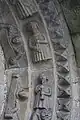 On the outside, renovated during the Baroque period, the only thing that can be seen is the two-door Gospel wall, in which the Gothic carved door, dating from the last quarter of the 14th century, shows the theme of the Last Judgement.[1] In the archivolts can be seen the bust of Christ the Judge showing his wounds, Saint Peter with the keys or an angel playing the trumpet, among other figures. The building adjacent to the convent was built in 1880 to serve as the summer residence of the archbishop, Cardinal Quiroga Palacios.[17]