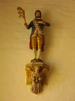 Born in Ireland with the Irish name of Fingar, he was converted to Christianity by Saint Patrick and after spending time in Brittany went with 7 (or 777) companions to Cornwall, landing at Hayle, where he was martyred by King Teudar.[Notes 2][1][2] Gwinear was said to have died with his followers by being thrown into a pit of reptiles. An alternative version sets the story in Brittany with Guigner being martyred at the hands of Prince Tewdwr.[3]
