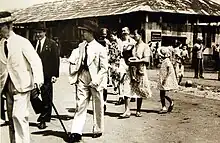 St John's Island served as a World War I and World War II internment camp.[46][47] In August 1914, right after World War I began, most German men in Singapore were interned on St John's Island and Tanglin Barracks while women and children were detained in Kuala Lumpur.[46] Enemy combatants were also imprisoned on the island, including the crew of SS Markomannia and the Greek collier SS Pontoporos, which was captured by the Germans.[48][49] By 1916, a total of 296 enemy nationals had been transferred from St John's to Australia .[50] During World War II (1939–1945), enemy foreign nationals—some of whom were fleeing Nazism—were interned at St John's Island in 1940.[51][52] Of these, the Germans who were to be removed from the war were interned in Ceylon.[53] As for the rest, some were deported to neutral grounds like Shanghai. Others were transported to Australia, including German-Jewish Werner Baer (musician) and his family.[51][53][52] Separately, the Japanese subsequently allied with the Germans and invaded Malaya. Shortly after, the Japanese women and children in Singapore were also interned on St John's Island from late 1941 to 1942 before being shipped to Calcutta.[54] When the Japanese occupation of Malaya during World War II began, Allied prisoners of war were detained on St John's.[47]