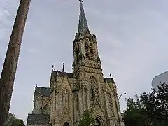 It is a Gothic Revival-style stone church in the form of a Latin cross, 177 feet (54 m) long and 92 feet (28 m) feet wide. It was designed by German-born architect, Adolphus Druiding.[2] Plans and designs for the church began in 1887, and in 1890 it was finished and dedicated. The Lockport sandstone and Medina brownstone were hauled by barge down the Erie Canal. The building was designed to seat 1,100 parishioners.[3] The organ was built by J. W. Steere & Son Organ Company of Springfield, Mass and has 2,169 pipes. The church bells were manufactured by the Meneely and Kimberly foundry, and by the McShane Bell Foundry.