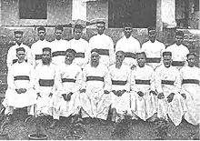 Historically, this community was organised as the Province of India of the Church of the East by Patriarch Timothy I (780–823 AD) in the eighth century, served by bishops and a local dynastic archdeacon.[6][9][10] In the 14th century, the Church of the East declined due to persecution by Tamerlane,[11][12] and Portuguese colonial overtures to bring St Thomas Christians into the Latin Catholic Church, administered by their Padroado system in the 16th century, lead to the first of several rifts (schisms) in the community.[13][14][15] The attempts of the Portuguese culminated in the Synod of Diamper, formally subjugating them and their whole Archdiocese of Angamaly as a suffragan see to the Archdiocese of Goa, which was under the Portuguese Padroado and celebrated the Roman Rite form of worship. Portuguese oppression provoked a violent resistance among the Thomasine Christians, that took expression in the Coonan Cross Oath protest in 1653. This led to the permanent schism among the Thomas' Christians of India, leading to the formation of Puthenkūr (New allegiance, pronounced Pùttènkūṟ) and Pazhayakūr (Old allegiance, pronounced Paḻayakūṟ) factions.[16] The Pazhayakūr comprise the present day Syro-Malabar Church and Chaldean Syrian Church which continue to employ the original East Syriac Rite (Babylonian Rite /Persian Rite) liturgy.[6][17][18][19] The Puthenkūr group, who resisted the Portuguese, under the leadership of archdeacon Thoma I, organized themselves as the independent Malankara Church,[20] entered into a new communion with the Syriac Orthodox Church of Antioch, and they inherited the West Syriac Rite from the Syriac Orthodox Church, which employs the Liturgy of Saint James, an ancient rite of the Church of Antioch, replacing the old East Syriac Rite liturgy.[21][22][6]