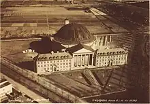 At the beginning of 1932, both wings of the church were completed, one of them established as a school for boys. At the end of 1933, the walls of the rotunda were erected, in 1935 the reinforced concrete dome was set. At the end of 1938, the church was roughly finished. The outbreak of WWII required a swift completion of the dome covered with a roof, with an internal staircase connecting the Assembly House with the church.