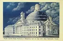 After declining a series of projects, Polish authorities authorised in 1966 the construction of the outer dome started.[2]