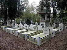 The Cimetière de Liers was created as the second communal cemetery on February 8, 1879 in the city of Sainte Geneviève des Bois in France, 25 km south from Paris. To house the burials of the White Russians who arrived in Moscow after the Bolshevik revolution in Russia, some of the land was granted in 1927 to an English benefactress, Dorothy Paget who had set up with Elena Orlov and her sister Princess Vera Meshchersky a still active retirement home for Russian émigrés nearby in the Château de la Cossonnerie.[1] This part of the cemetery is since known as the Russian Cemetery.