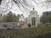 In 1938–39 Albert Benois designed the Dormition Church (Église de la Dormition-de-la-Mère-de-Dieu)[2] which serves the cemetery. The church is regarded as an important historic monument and is built in the style of Novgorod Churches of the 15th and 16th century.[3]