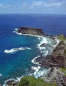 Saipan has some additional semi-attached islets, one of which being Bird Island, which is a nature reserve for birds. It is connected to Saipan only at low tide.[21] Forbidden Island is similar, but larger on the south east side of Saipan.[22] Mañagaha is a small 100 acre island off the west coast, and is a popular tourist destination. Access is by ferry, which is about ten minutes from the mainland.