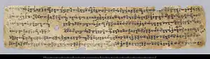 Documents on wood and paper were written in modified Brahmi script with the addition of extra characters over time and unusual conjuncts such as ys for z.[4] The documents date from the fourth to the eleventh century. Tumshuqese was more archaic than Khotanese,[5] but it is much less understood because it appears in fewer manuscripts compared to Khotanese. The Khotanese dialect is believed to share features with the modern Wakhi and Pashto.[6][7][8][9][10][11][12] Saka was known as "Hvatanai" in contemporary documents.[13] Many Prakrit terms were borrowed from Khotanese into the Tocharian languages.