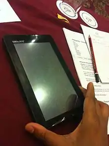 ![]() Image of the Ubislate7 – initial version of Aakash. | |