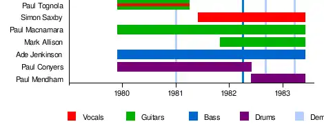 Soon after this first demo, Tognola left the band to be replaced by Simon Saxby as the new singer and later in the year by Mark Allison as the second guitarist. With this new line-up, Salem released its double A-side single, "Cold As Steel"/"Reach To Eternity", recorded again at Fairview on 4 April 1982; this is considered to be one of the notable recordings from Fairview.[5] Following the interview with Macnamara in the May 1982 Kerrang! (No. 15), the single appeared in the 'local chart' section of the magazine and singles were sold globally. According to the NWOBHM Encyclopaedia,[6] the single is now "a highly collectable and valuable rarity", and is also listed in Record Collector's "Rare Record Price Guide".[7]