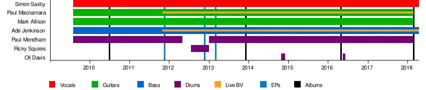 In July 2012, Ricky Squires, formerly of the dEAd End KIdS[11] and the Heavy Metal Kids, joined on drums to play festivals and gigs with Salem in Europe, including the Heavy Metal Night V[12] in Martinsicuro, Italy, Negosonic in Aalst and Ages of Metal IV[13] in Oostrozebeke, Belgium, and the Metieval Winterfest[14] back in Hull.