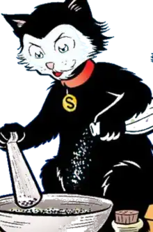Salem Saberhagen is a fictional character from the American Archie Comics comic series Sabrina the Teenage Witch. Salem is an American Shorthair cat who lives with Sabrina Spellman, Hilda Spellman and Zelda Spellman in the fictional town of Greendale, located near Riverdale. A formerly human witch, Salem was sentenced by the Witch's Council to spend 100 years as a cat, as punishment for trying to take over the world. Salem first appeared alongside Sabrina in Archie's Mad House #22 in 1962, and was created by George Gladir and Dan DeCarlo.