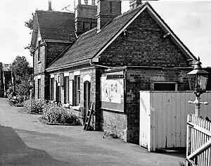 Salford Priors railway station was a railway station located in the village of Salford Priors, Warwickshire, England. Opened on 16 June 1866 (17 September for passengers)[2] as part of the Evesham & Redditch Railway, it had only one platform but a brick built waiting room/ticket office and station master's house.[3] It closed on 17 June 1963, although the last train ran on 1 October 1962, after which the train service was suspended due to the poor condition of the track. A bus service replaced it while the statutory closure process was gone through.[4]