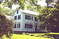 Salmon P. Chase Birthplace was the birthplace and childhood home of Salmon P. Chase. It is located about 8 miles (13 km) north of Claremont on New Hampshire Route 12A. The 2+1⁄2-story wood-frame house was built c. 1790, and is a multi-section structure in an L shape. The main block is five bays wide and two deep, with a centered entry that has Greek Revival pilasters on the central entry and on the corners. This block faces west, and two narrower sections extend east from the rear. The first of these sections is also 2+1⁄2 stories, with two chimneys. The easternmost section is 1+1⁄2 stories, and was originally connected to a barn. The house is believed to be well-preserved, but there is no documentary evidence of its appearance in the early 19th century, and it is known to have been moved across the street from its original site in about 1848.[3]
