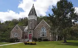 Saltville Historic District is a national historic district located at Saltville, Smyth County, Virginia. The district includes 104 contributing buildings and 3 contributing sites in the central business district and surrounding residential areas of Saltville. It includes a variety of residential and commercial buildings primarily dating from the late-19th to mid-20th centuries. Notable buildings and sites include Well Fields, Saltville Golf Course, Office Building (1850), Mathieson Alkali Office Building (1894), company store (1895), First National Bank of Saltville, St. Paul's Episcopal Church (1896), Gothic Revival style Madam Russell Memorial United Methodist Church, Duplex House (1894), Saltville Post Office (1931), Piggly-Wiggly Store, Saltville Savings Bank (1920), and Saltville Town Hall (1949).[3]