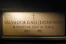 On 26 June 2017 it was announced that a judge in Madrid had ordered the exhumation of Dalí's body in order to obtain samples for a paternity suit.[154] Joan Manuel Sevillano, manager of the Fundación Gala Salvador Dalí (The Gala-Salvador Dalí Foundation), denounced the exhumation as inappropriate.[155] The exhumation took place on the evening of 20 July, and his DNA was extracted.[156] On 6 September 2017 the Foundation stated that the tests carried out proved conclusively that Dalí and the claimant were not related.[157][158] On 18 May 2020 a Spanish court dismissed an appeal from the claimant and ordered her to pay the costs of the exhumation.[159]