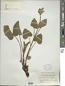 Salvia evansiana (the Snow Mountain sage) is a perennial plant that is native to Sichuan and Yunnan provinces in China, found growing on alpine meadows, hillsides, and forests at elevations from 3,400 to 4,300 m (11,200 to 14,100 ft). It has erect stems growing 13 to 45 cm (5.1 to 17.7 in) tall, with ovate to triangular-ovate leaves that are 2 to 11 cm (0.79 to 4.33 in) long and 1 to 11 cm (0.39 to 4.33 in) wide.