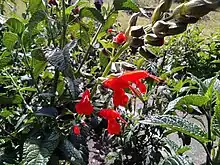 Salvia pauciserrata is a variable and widely distributed species of Salvia native to Peru, north to Venezuela and Costa Rica. It is found in a wide variety of habitats. It reaches 1 to 2 m (3.3 to 6.6 ft) tall. The inflorescence is of terminal racemes, with a large red corolla that is 2.5 to 4 cm (0.98 to 1.57 in) long.[1]