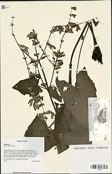 Salvia smithii (the Sichuan orange sage) is an aromatic perennial plant that is native to Sichuan province in China, found growing on riverbanks, valleys, and hillsides at 2,600 to 3,500 m (8,500 to 11,500 ft) elevation. S. smithii grows to 30 to 90 cm (12 to 35 in) tall, with leaves that are broadly cordate-ovate to ovate-hastate, ranging in size from 4 to 22 cm (1.6 to 8.7 in) long and 3 to 18 cm (1.2 to 7.1 in) wide.