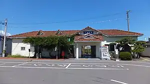 The station consists of a side platform and an island platform serving three tracks. A station building houses a waiting room and a JR ticket window (with a Midori no Madoguchi facility). Access to the island platform is by means of a footbridge. A siding runs on the far side of the island platform beyond track 3. Parking is available on the station forecourt and a large bike shed is provided.[2][3][5]