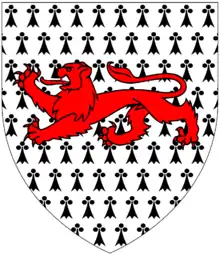 - Emma Louisa Drewe, eldest daughter, heiress of Wootton House,[7] Wootton Fitzpaine, Dorset, who married her first cousin Lt-Col Francis Fownes Luttrell (1792–1862) of Kilve Court, Somerset and of Wootton House (3rd son of John Fownes Luttrell (1752–1816) of Dunster Castle, MP),[8] Lt-Col of the Grenadier Guards who fought and was wounded at the Battle of Waterloo in 1815 and was Lt-Col of the Somerset Militia in 1839. Francis's portrait in the library of Dunster Castle shows him in military uniform with his right eye missing, a battle wound. Her son was George Fownes Luttrell (1826–1910), of Dunster Castle, JP, DL, Sheriff of Somerset in 1874.