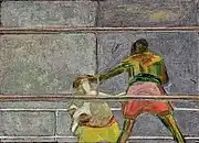 Rabin was physically strong and had boxed and wrestled as an amateur to fund his art.[4] He won a bronze medal in the middleweight division of the free-style wrestling at the 1928 Olympics in Amsterdam.[1][8] Rabin turned professional in 1932 and fought as Rabin the Cat and Sam Radnor the Hebrew Jew across Britain. Alexander Korda cast him as a wrestler in The Private Life of Henry VIII in 1933 and as Mendoza, a Jewish prize-fighter, in The Scarlet Pimpernel in 1934.[1]