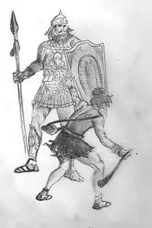 One major variation in the Samuel text is in 1 Samuel 17:4. While both the Septuagint and Josephus' writings attributed only four cubits and a span (possibly about 6 feet 6 inches (198 cm) to Goliath's height, the Masoretic Text recorded Goliath's height as six cubits (possibly about 9 feet 6 inches (290 cm). The Septuagint writes, "καὶ ἐξῆλθεν ἀνὴρ δυνατὸς ἐκ τῆς παρατάξεως τῶν ἀλλοφύλων Γολιὰθ ὄνομα αὐτῶν ἐκ Γέθ, ὕψος αὐτοῦ τεσσάρων πήχεων καὶ σπιθαμῆς·" The translation of this verse reads, "And there went forth a mighty man out of the army of the Philistines, Goliath, by name, out of Geth, his height [was] four cubits and a span.".[6] Furthermore, In Josephus' account of this story, he writes, "Now there came down a man out of the camp of the Philistines, whose name was Goliath, of the city of Gath, a man of vast bulk, for he was of four cubits and a span in tallness ... ."[7] However, because the Masoretic Text was written in the original Hebrew language and was considered to be an older version of the text, scholars used its translation for years, attributing to Goliath a height that surpassed even that of the tallest man ever recorded in medical history.[8]