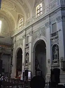 The layout is that of a Latin cross. The masterpiece inside the church is the main altar's sculptural group depicting the Liberated Slaves by Giovanni Baratta, depicting an angel with one liberated and one still chained slave.[1]