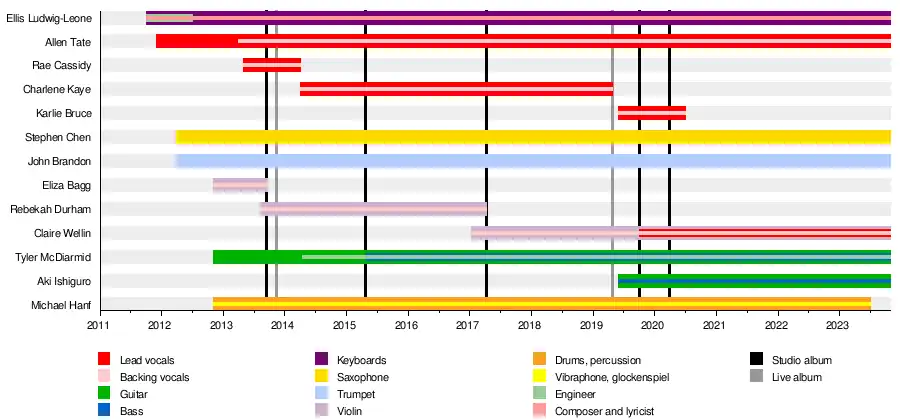 - Ellis Ludwig-Leone – bandleader, composer, piano, keys, percussion (2011–present)