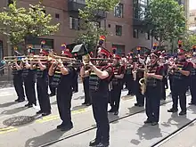 "The San Francisco Lesbian/Gay Freedom Band provides for the education and musical development of its members, promotes visibility of lesbian, gay, bisexual and transgender communities, and with its allies, fosters understanding among diverse communities through public performance."[1]