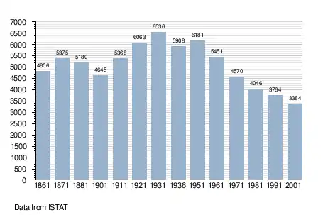 - "Superficie di Comuni Province e Regioni italiane al 9 ottobre 2011". Italian National Institute of Statistics. Retrieved 16 March 2019.
