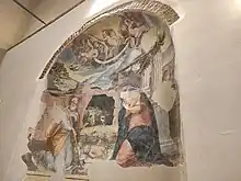 The church, built in the first half of the 14th-century, is open only to guided tours. The sober façade reflects its relationship to a Romanesque-style, Benedictine order monastery, though later the church was property of the Dominican order, and called San Domenico. The interior has frescoes of the Nativity and Madonna of the Rosary (1558) by Giovanni Andrea De Magistris.[1]