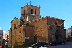 Construction began in the 12th century, but the church has been refurbished since, and had the addition of chapels. The highly sculpted main portal derives from the razed church of San Nicolás, moved here in 1908. The apse has flat striated pillars, one of which forms the axis of symmetry, separating two windows with semi-circular arches as opposed to the most common single one.