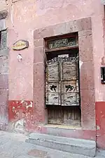 In the historic center, there are an estimated two thousand doors, behind which there are at least two thousand courtyards of various sizes.[10] Many of these have been restored to their former colonial state,[14] with façades of ochre, orange and yellow, windows and doors framed by handcrafted ironwork and made of hewn wood.[33] The interior roofs are flat, of heavy mortar supported by large beams. Very few structures have atriums or front yards; instead, open private space is behind the main façade in courtyards. These courtyards are where the private gardens were, protected from dust, excess water and crime.[10]