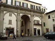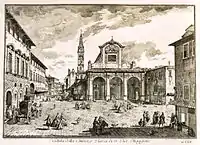 A church was already present at the site when a Benedictine convent was established there in 1067 by the Florentine noblewoman Gisla and the then-Bishop Peter Mezzabarba,[1] and a Gothic church was built here in the early fourteenth century.[2] The Florentine government almost entirely removed this church in 1784 and replaced it with a marketplace,[2] although three arches of the portico have been preserved into the twenty-first century.[3]