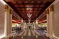 The interior is finished under the theme of the early Rattanakosin era, as designed by expert in Thai architecture and national artist Pinyo Suwankiri. The inside is decorated with Sadom pillars (main pillar), these are etched with tiles carve into the shape of the Pikul flower sharpe, which signify prosperity, with the pillar edges adorn with blooming lotus shapes, with long curve petals leaning toward the centre, the bottom of each large petals engrave with smaller petals and coated in gold leaf. The floor and walls made of resemble the city walls. The ceiling painted with star sharpe stencils to resemble the atmosphere of the throne hall in Rattanakosin era. The station has a higher ceiling than most MRT stations along the line as the ventilation system was installed to the side of the station instead of directly above it.