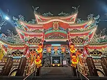 The Sanchong Yi Tian Temple (Chinese: 三重義天宮; pinyin: sānchóng yì tiāngōng) is a traditional Taoist temple located in Sanchong District, New Taipei, Taiwan. Built in 1965, the sea goddess Mazu is the principal Deity worshiped at Sanchong Yi Tian Temple. The temple is the center of religious worship in the surrounding areas of Sanchong and Luzhou. It is also known locally as Cat Temple as it is famous for providing a shelter for neighborhood stray cats.[1] The front stairway leading to the temple is more than 20 m (66 ft) in length and several red lanterns adorn the front gate. It is believed that these lanterns initially attracted the felines to the temple.[2][3]