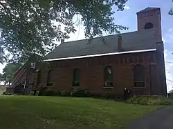 Sand Beach Church is a historic Reformed Church church located in the Town of Fleming near Auburn in Cayuga County, New York. It is a vernacular Romanesque Revival style brick structure built in 1854–1855 on the site of an earlier 1807 frame church. The church features a square bell tower that once stood 82 feet high, but was modified to its present form after a fire in 1935. The former church building was purchased by Sean Lattimore on August 3, 2007, for use by the nearby Springside Inn Restaurant. Adjacent to the church is a cemetery with burials dating to the early 19th century. On August 17, 1978; all of the assets of the Owasco Lake Cemetery Association, including both the former Sand Beach Cemetery and adjacent Owasco Lake Cemetery land parcels, were deeded to become owned by the Town of Fleming NY. Noted missionary Samuel Robbins Brown (1810–1880) served as pastor from 1851 to 1859 and in 1867 upon his return from Japan.[2]