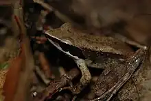 - IUCN SSC Amphibian Specialist Group (2018). "Sanguirana sanguinea". IUCN Red List of Threatened Species. 2018: e.T58709A114915766. doi:10.2305/IUCN.UK.2018-2.RLTS.T58709A114915766.en. Retrieved 17 November 2021.